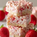 These Strawberry Crunch Rice Krispie Treats combine the classic marshmallow and crispy rice cereal base with a delightful strawberry and Golden Oreo cookie topping that adds a sweet, crunchy twist. The topping is baked to enhance flavor and texture, offering a deliciously unique treat perfect for dessert or snack time.