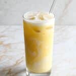 - Add Coconut Cream and Pineapple Juice: Spoon 2 tablespoons of thick white coconut cream over the soda. Then, slowly pour 2 tablespoons of chilled pineapple juice on top, allowing it to swirl naturally through the fizzy soda. If desired, add 1 tablespoon of vanilla syrup at this stage for added sweetness.
