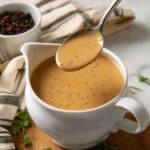 This rich and savory turkey gravy made from flavorful turkey drippings is the perfect finishing touch to complement your Thanksgiving meal. Smooth and velvety with a well-balanced seasoning, it elevates roasted turkey and sides alike.