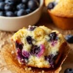 - Scoop batter into muffin pan: Using a small measuring cup or ice cream scoop, fill the muffin liners about 3/4 full. Optionally, top each muffin with a few extra blueberries and sprinkle with coarse sugar for a crunchy topping.