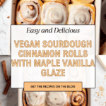 Keywords: sourdough cinnamon rolls, vegan cinnamon rolls, maple vanilla glaze, sourdough baking, vegan dessert, breakfast rolls