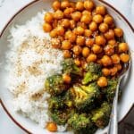 This Vegan Sticky Sesame Chickpea recipe features tender chickpeas coated in a luscious, sweet, and savory sticky sesame sauce. Combining toasted sesame oil, maple syrup, tamari, garlic, and a hint of ginger, it’s a quick and flavorful plant-based dish perfect for a healthy meal. Ready in under 30 minutes, it pairs well with steamed rice, quinoa, or broccoli for a satisfying vegan dinner option.