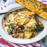 Keywords: Zuppa Toscana casserole, Italian casserole, creamy potato casserole, sausage and kale bake, baked potato dish, comfort food